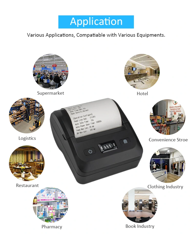 Како пренослив мобилен уред, нашиот дизајн е мал по големина и целосно функционален. Внатрешниот дизајн претрпе строг дизајн и длабинска оптимизација, со батерија со голем капацитет и модул за печатење со широк формат. 80 мм Bluetooth печатачот е способен за автоматско сечење хартија. Лесно може да сече термичка хартија со мазен и без влакна на работ, а има долг животен век и може често да се користи.